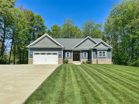 Gorgeous Apple Valley ranch situated on double lots totaling .5383 of an acre, this custom home offers 5 bedrooms and 3 full baths, inviting double door entry, an open great room floor plan with living room, dining area and gorgeous cabinet filled kitchen, major appliances are included, convenient main level laundry, primary bedroom suite with double closets and deluxe en suite primary bath, impressive walkout lower level with second living room room, gas fireplace, kitchenette, full bath and two bedrooms, fantastic rear deck and lower level patio space, attached 2 car garage with concrete driveway, yard barn for added storage, this home is a must see to appreciate. $475,000.